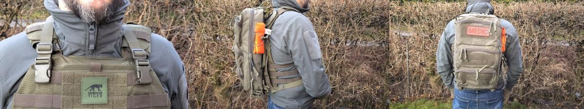 The Modular Medic Combat Pack 18 is now mounted on the plate carrier and can be easily put on and taken off using the buckles.