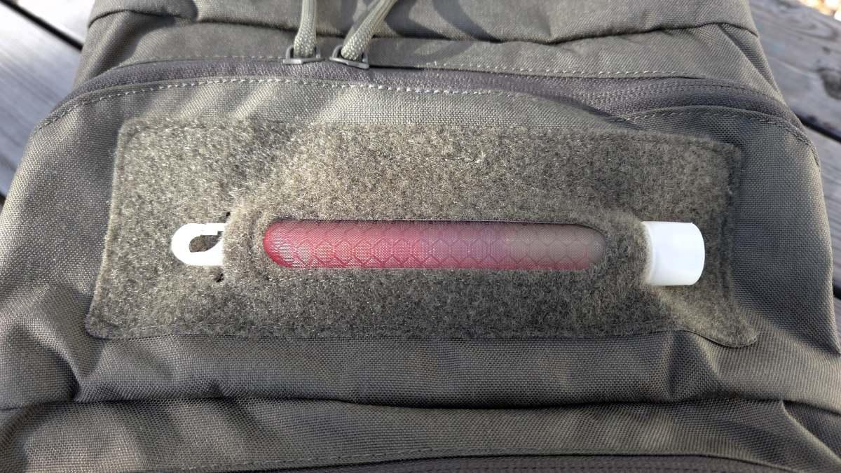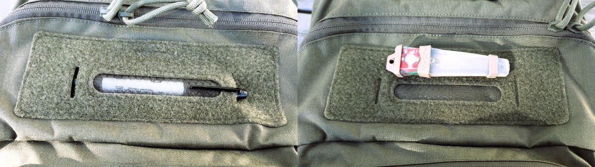 The slot for chem lights can alternatively be used for a marker pen. The Velcro surface is used for attaching identifiers or a V-Lite.