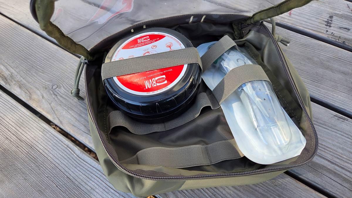 They also feature Velcro surfaces on the outside as well as a slot for chem lights, which can be used to mark the contents. Red can indicate bleeding, blue ventilation, for example.