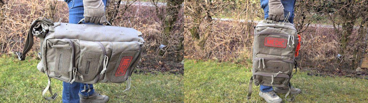 The Modular Medic Combat Pack 18 can be carried horizontally and vertically. The side handles provide carrying comfort and can be used for transporting injured persons.