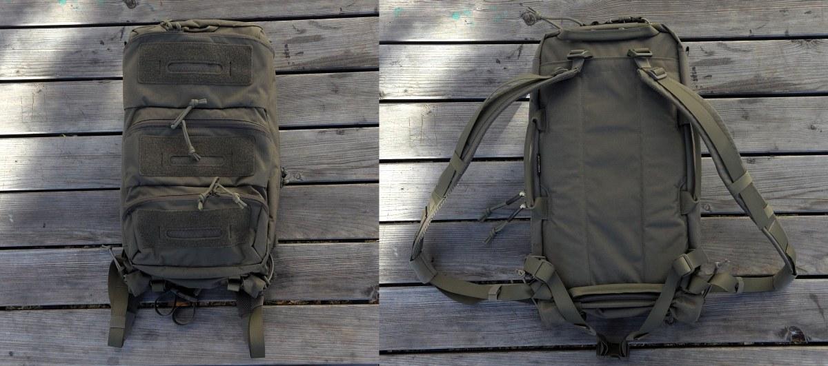 The front pockets are accessed via two diagonally running YKK zippers with paracord.