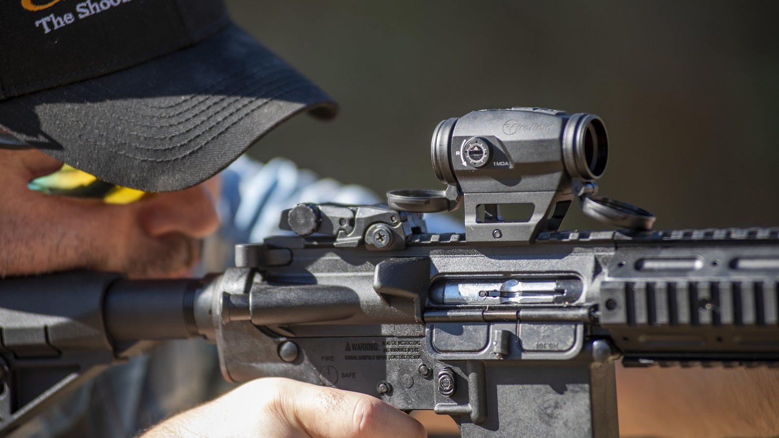 The RapidStrike is IP67-rated for waterproof and dustproof protection, shock-rated up to 12-gauge recoil, and nitrogen-purged for fogproof performance in shifting temperatures. Its flush-mounted turrets and clear flip-up lens caps enhance both durability and usability.