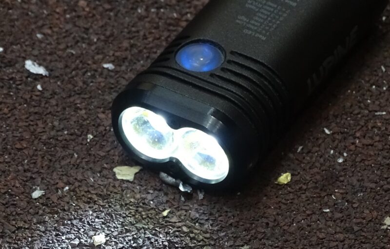 The length is 87 mm, the diameter of the lamp head is 42 x 24 mm. The housing of the Piko TL MiniMax is made of hard-anodized aluminum and milled from a single piece. This makes the lamp dust and waterproof and has protection classes IK 09 (impact resistance), IP 67 (waterproof). The weight is 150 grams.