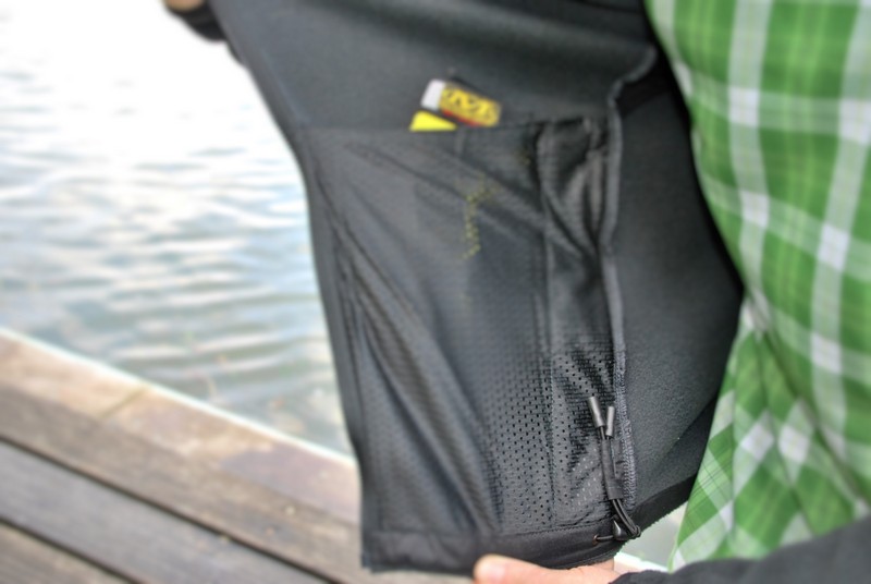 The zipper is lined with about a 2cm wide wind protection strip that reaches up to the collar, providing additional protection for the chin. The zippers on the pockets and in the middle have a piece of webbing attached for better usability (we replaced the front zipper with an ITW Nexus GT Zipline).