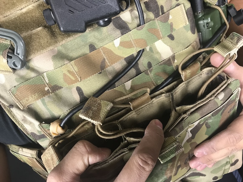 Beneath it lies a belly pouch, here expanded with a Ten Speed Double M4 Pouch. It holds everything from magazines to flashbangs and is a versatile piece of equipment.