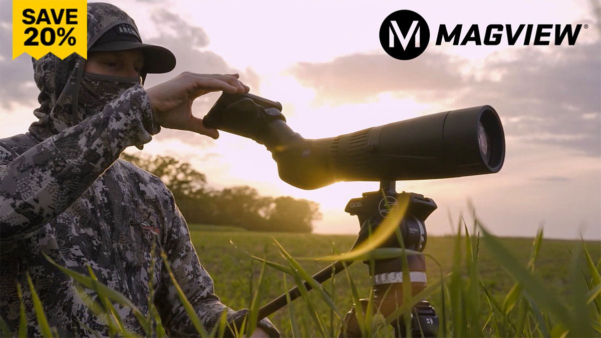 At BROWNELLS, you can save until March 8th, and multiple times at that. First, you save 20% on MAGVIEW products. The MAGVIEW binocular and spotting scope adapter is developed as the slimmest digital spotting scope system on the market, allowing you to film through your optics without compromise and capture impressive footage from a distance anywhere.