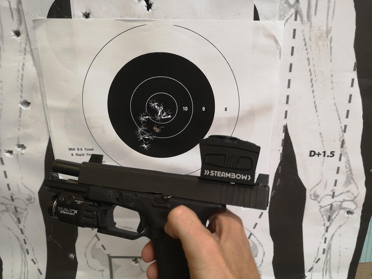 We have already reported about our insider tip HERE. Now we have put about 500 shots through the Glock with it, and it's time for a review of the STEAMBOW Raptor SB1x20 Red Dot Sight.