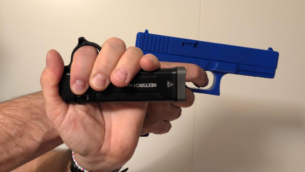 The NEXTORCH TA70 Ultra-Slim Tactical EDC Flashlight comes with a tactical grip ring. The tactical ring is somewhat similar to the Thyrm Switchback used for EDC lights.