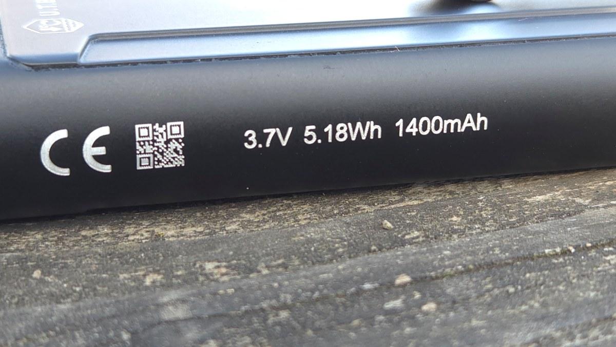 The flashlight measures 121 mm × 35 mm × 18.7 mm and weighs 124 g. It’s made of aircraft-grade aluminum and has an IP67 waterproof rating. The build quality is good. Power is supplied by a built-in 1400 mAh battery.