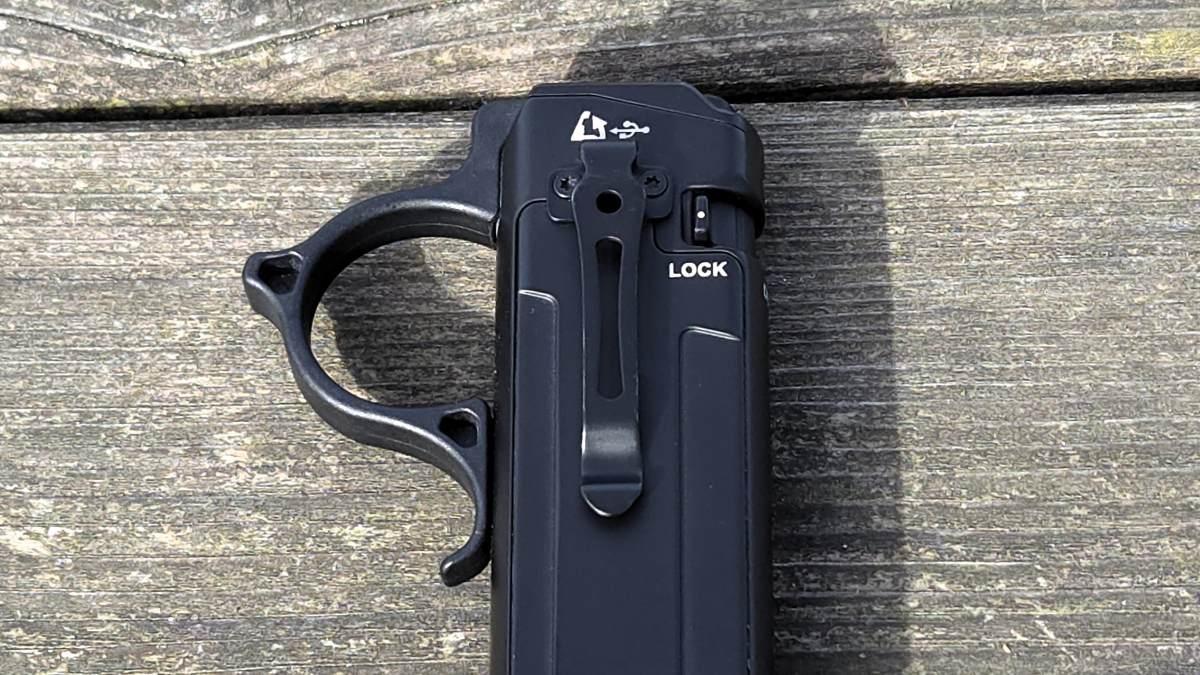 Additionally, a repositionable pocket clip is included. The clip can be mounted on either side of the flashlight body.
