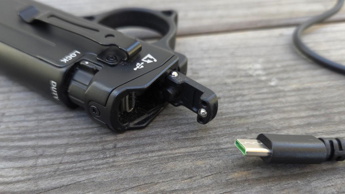 Charging is done via a USB-C port under the tail switch. The switch flips upward to expose the port. It’s waterproof, so the flashlight maintains its IP67 rating even when the port is open. Charging takes a little over 2 hours, during which the TA70 cannot be used. There’s no power bank function, which is expected for such a small battery.