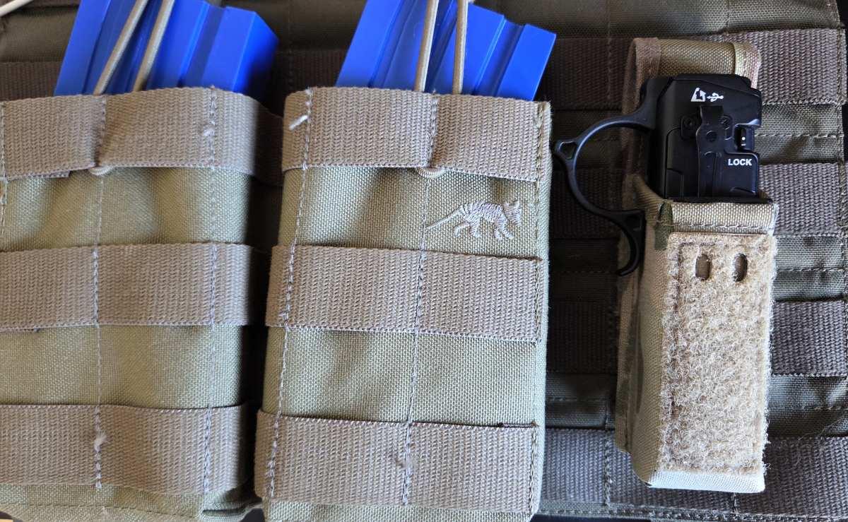 The flashlight is flat enough to fit most pistol magazine or multitool pouches, such as the Pistolance by TIGER TAILOR. NEXTORCH also offers a V18 holster for the TA70, compatible with belts and MOLLE/PALS gear.