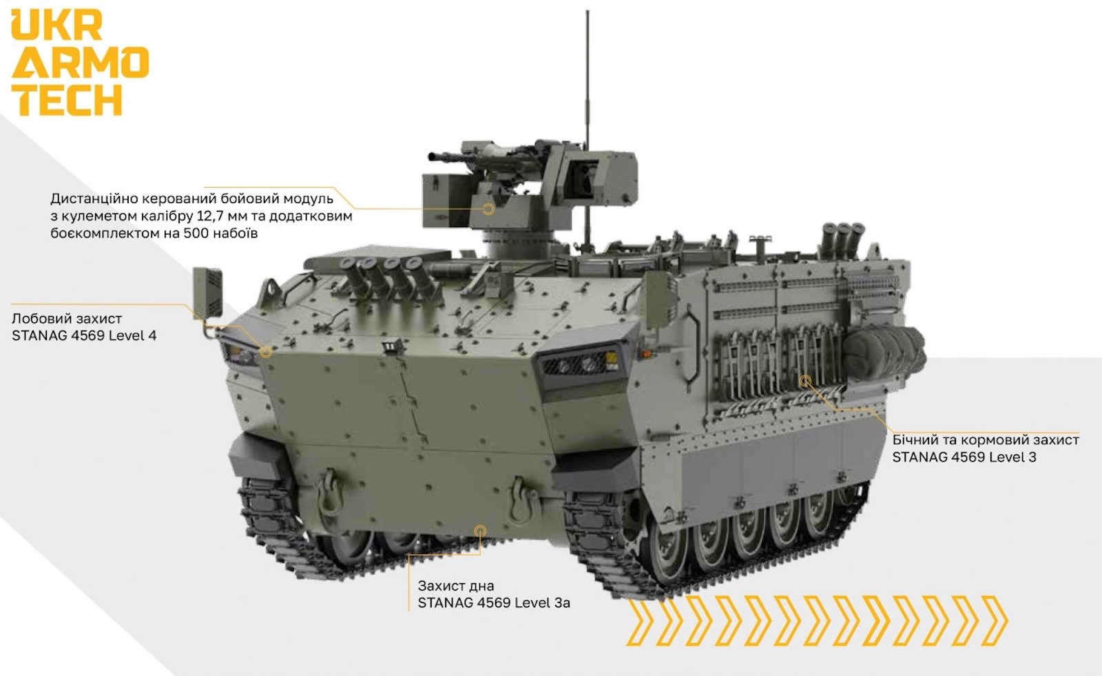 The vehicle has an estimated weight of 15 tons and is powered by a 360-horsepower engine. In terms of protection, it features STANAG Level 4 armor at the front, Level 3 on the sides, and mine protection of Levels 3A and B. In terms of armament, the vehicle will be equipped with a remote-controlled weapon system (RWS) that includes either a .50-caliber machine gun or a 14.5-mm machine gun with a coaxially mounted 7.62-mm machine gun. ALL THE DETAILS at DEFENSE EXPRESS.