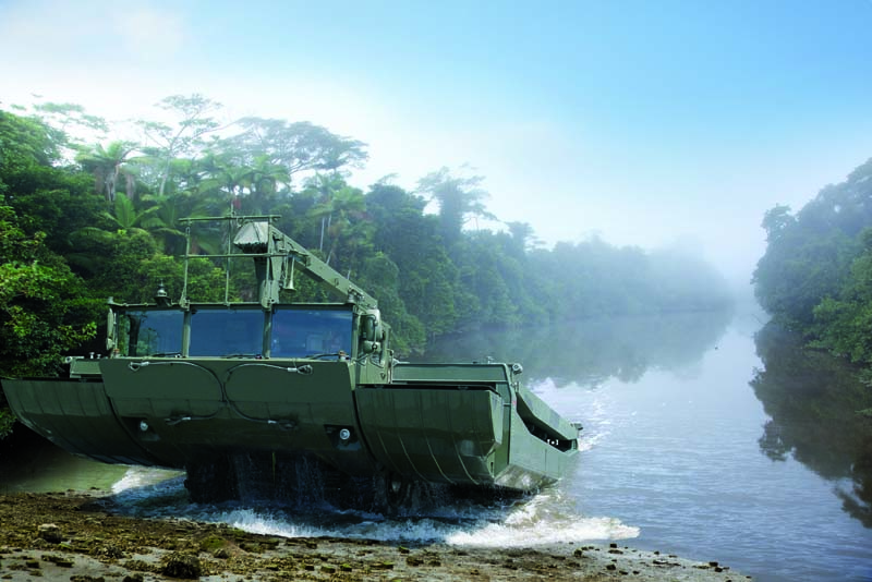 Das amphibische Brücken- und Fährsystem M3 verfügt über eine Nutzlast für Raupenfahrzeuge bis MLC85 und für Radfahrzeuge bis MLC 132 und kann eine 100 Meter lange Schwimmbrücke in weniger als 10 Minuten einbauen.