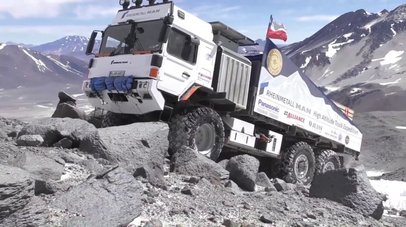 Geschafft! Die blockierte Felsrinne konnte freigeräumt werden und die Trucks können zeigen was in ihnen steckt. Voll beladen und mit starker Steigung, teilweise bis zu 100 Prozent, geht es hinauf auf den Vulkan. Alles spielt zusammen und das Material, die Mannschaft und Trucks erreichen ihren ersten Meilenstein. Die Schutzhütte auf 6.100 Metern kann errichtet werden. Zum Video gelangt ihr über das Titelbild, oder HIER.