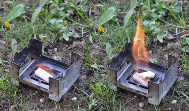 Die Wärmezufuhr ist nur mit AN oder AUS zu regeln und man sollte die Brennstofftabletten ganz abbrennen. Auch wenn der Esbit meist gut verpackt ist, sobald er feucht geworden ist, sollte man davon absehen ihn zu verwenden, feuchter Esbit neigt dazu zu explodieren (selbst erlebt in einer schwedischen Tageshütte, ein Mitgast hat uns allen einen gehörigen Schrecken eingejagt und Brandlöcher in den Schlafsäcken produziert).
