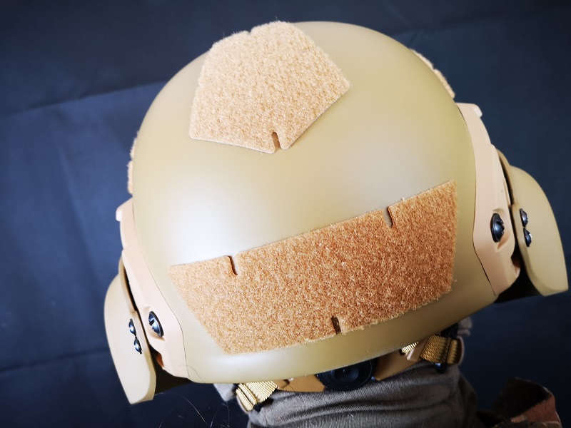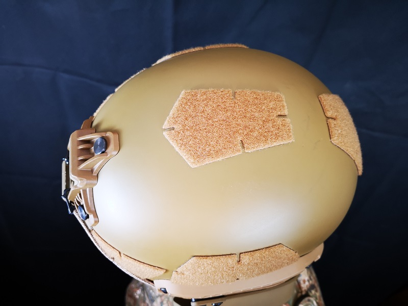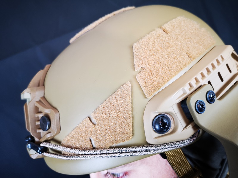 Klettflächen dürfen bei einem Einsatzhelm in diesen modernen Zeiten nicht fehlen, so auch hier nicht. Die Zubehörrail nimmt alles auf was auch für Ops Core gedacht ist.