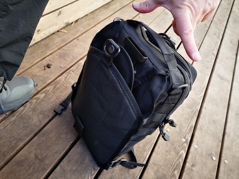 Das MOLLE am oberen Außenfach ist übrigens mit Klett versehen. Da passen natürlich wunderbar Patches drauf.