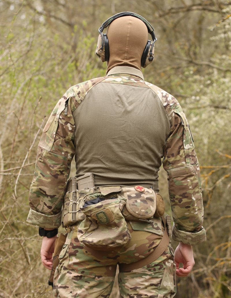 Wie bereits gesehen, befindet sich am Oberkörper nun auch mehr (Tarn-)Stoff. Ebenfalls neu sind zwei Veclroflächen auf der Brust für beispielsweise Namensschilder. Das Multicam Shirt hat natürlich sämtliches Velcro ebenfalls in Farbe Multicam. Auch mit ein Grund für den höheren Preis.