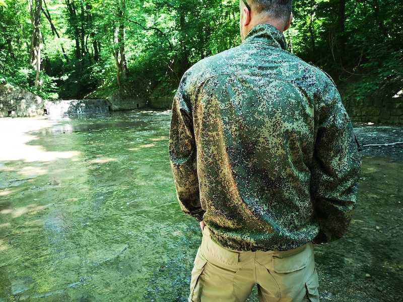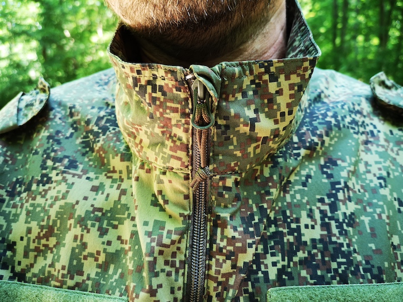 Das ist fast so wie beim westlichen US Army ECWCS oder auch PCU Set: nur dass das aus leichtem, winddichten Stoff gemachte Bekleidungsstück bei den Russen keine Schlupfjacke ist, sondern vielmehr eine Jacke im relativ traditionellen Schnitt der russischen Armee.