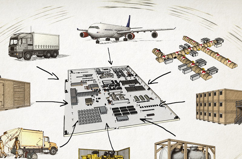 Dieses vom BAIUDBw initiierte Projekt soll die stationäre Unterbringung im Einsatz durch gewerbliche Dienst¬leister ermöglichen. Die Bundeswehr folgt mit diesem Programm dem weltweiten Trend, denn auch zahlreiche andere Streitkräfte und weitere Bedarfsträger lassen Dienstleister solche Leistungen erbringen. Experten gehen von einem weltweiten jährlichen Umsatzvolumen von rund 350 MrdEUR in diesem Marktsegment aus.