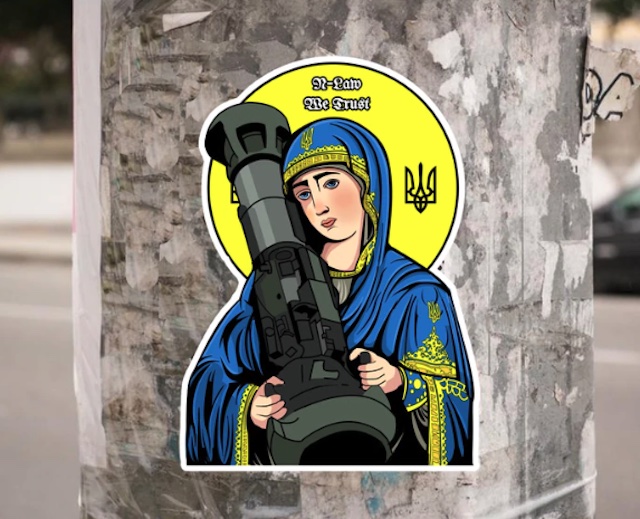 Ikonen sind ja was Wunderbares. Manchmal sind es aber die profanen Dinge des Lebens, die durchschlagenden Erfolg bringen. Das im Bild ist übrigens Saint NLAW, die zweitheilige Option. HIER gibt es T-Shirts und Sticker mit „Saint Javelin“. Der Reinerlös kommt Waisenkindern in der Ukraine zugute, die ihre Eltern im Krieg verloren haben.
