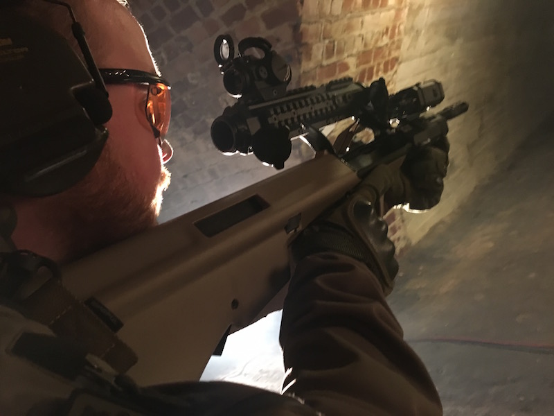 Claw Gear sticks to the classic A1/A2 AUG with the fixed-mounted sight. The weapon is from the time before Picantinny, so it lacks the options for adding what you need. With the Modular Scope Mount, Claw Gear overcomes this standstill: it simply screws over the regular sight, now the shooter can also mount an Aimpoint Micro as an aid for short distances.